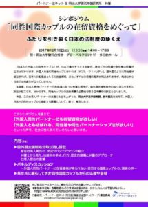 さらに詳しく »「日本人と外国人の同性カップル」が、日本で暮らそうとする場合、滞在ビザの問題や永住権の問題が立ちはだかります。外国人を含む同性カップルはいわば「ダブル・マイノリティ」。諸外国のように同性婚が成立すれば、日本人の配偶者と […]