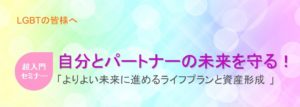 さらに詳しく »安心できる暮らしを作っていこう! 法の問題や、家族や周囲の人たちの理解、住居や保険など生活面での問題など、課題はたくさんあるかもしれませんが、「パートナーと楽しい未来を描きたい!」その想いは叶えることができると思います。 […]