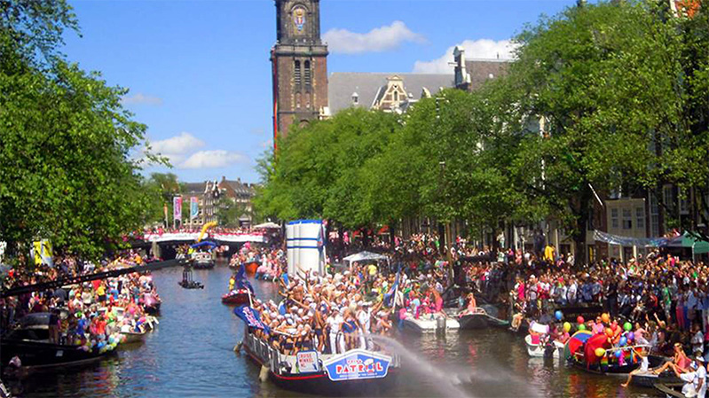 オランダ最大の都市アムステルダムの「プライド」の特徴は、何と言っても「運河パレード(Canal Padade)」でしょう。豪華に装飾された約80艘もの「フロート船(まさにフロート!)」が運河を航行。「Amsterdam Pride」は1996年に組織され、今では約50万人を動員しています。運河パレードは、毎年8月第1土曜日に開催。